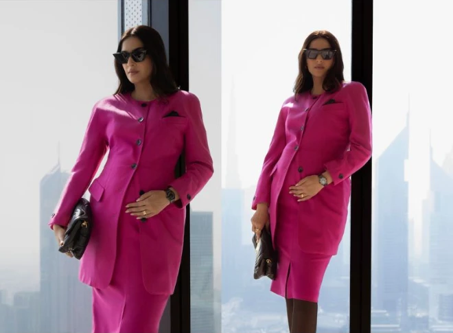 सोनम का यह हॉट पिंक आउटफिट, जो प्रिंसेस डायना के एक लुक से प्रेरित है, सबका ध्यान खींचने वाला है। बड़े पैडेड कंधों, सॉफ्ट शोल्डर लाइन और बेहतरीन टेलरिंग वाला यह प्योर वूल सूट उन्हें शहर की सबसे हॉट नई मॉम बना रहा था। बता दें, प्रिंसेस डायना ने 1988 में ऐसा ही एक एस्काडा सूट पहना था।