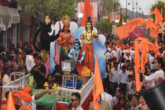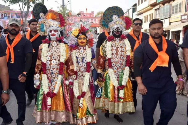 पाली शहर में रामनवमी पर निकाली गई शोभायात्रा में शामिल झांकियां। फोटो : सुरेश हेमनानीसीकर में रामनवमी से पूर्व शहर में भव्य शोभायात्रा निकाली गई। इस दौरान काफी संख्या में महिलाओं ने कलश लेकर भाग लिया। फोटो जी एल सैनीजोधपुर में रामनवमी पर निकाली गई शोभायात्रा में जीवंत झांकियों का प्रदर्शन फोटो : एसके मुन्नाजोधपुर में रामनवमी जुलूस में निकली झांकियां। फोटो गौतम उड़ेलियाभरतपुर में श्री राम जन्मोत्सव शोभायात्रा समिति की ओर से रामनवमी पर भगवान श्री राम की शोभायात्रा निकाली गई । इस दौरान हनुमान की वेशभूषा रखे व्यक्ति को ले जाते हुए। फोटो— विनोद शर्माजयपुर में रामनवमी के अवसर पर निकली शोभायात्रा। फोटो— रघुवीर सिंह