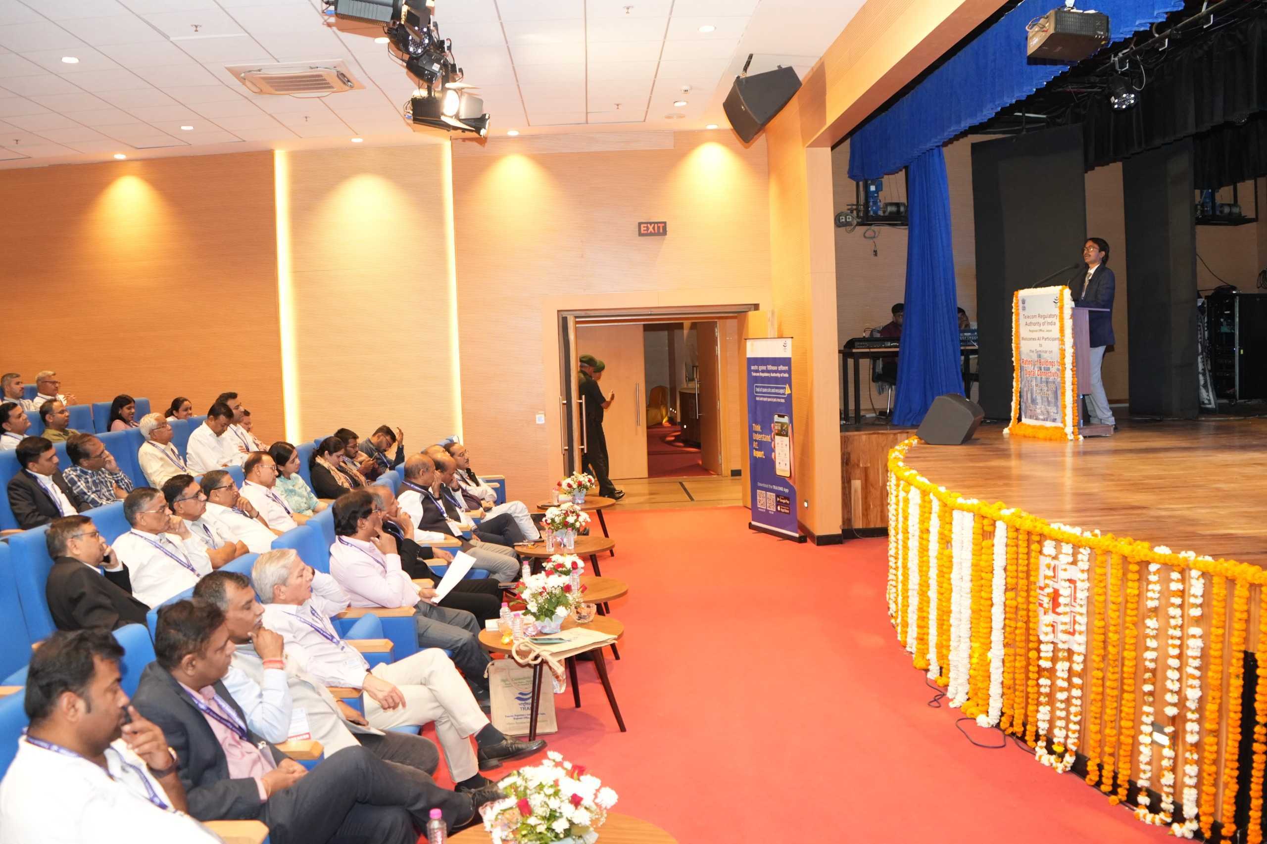 भारतीय दूरसंचार विनियामक प्राधिकरण (TRAI) के क्षेत्रीय कार्यालय, जयपुर द्वारा आज आरआईसी, जयपुर में “डिजिटल कनेक्टिविटी हेतु भवनों की रेटिंग” विषय पर एक सेमिनार आयोजित किया गया। यह सेमिनार 25.10.2024 को जारी “डिजिटल कनेक्टिविटी हेतु संपत्तियों की रेटिंग विनियम” की पृष्ठभूमि में आयोजित किया गया, जिसका उद्देश्य हितधारकों के बीच इस ढांचे एवं उसके क्रियान्वयन के संबंध में जागरूकता बढ़ाना था।